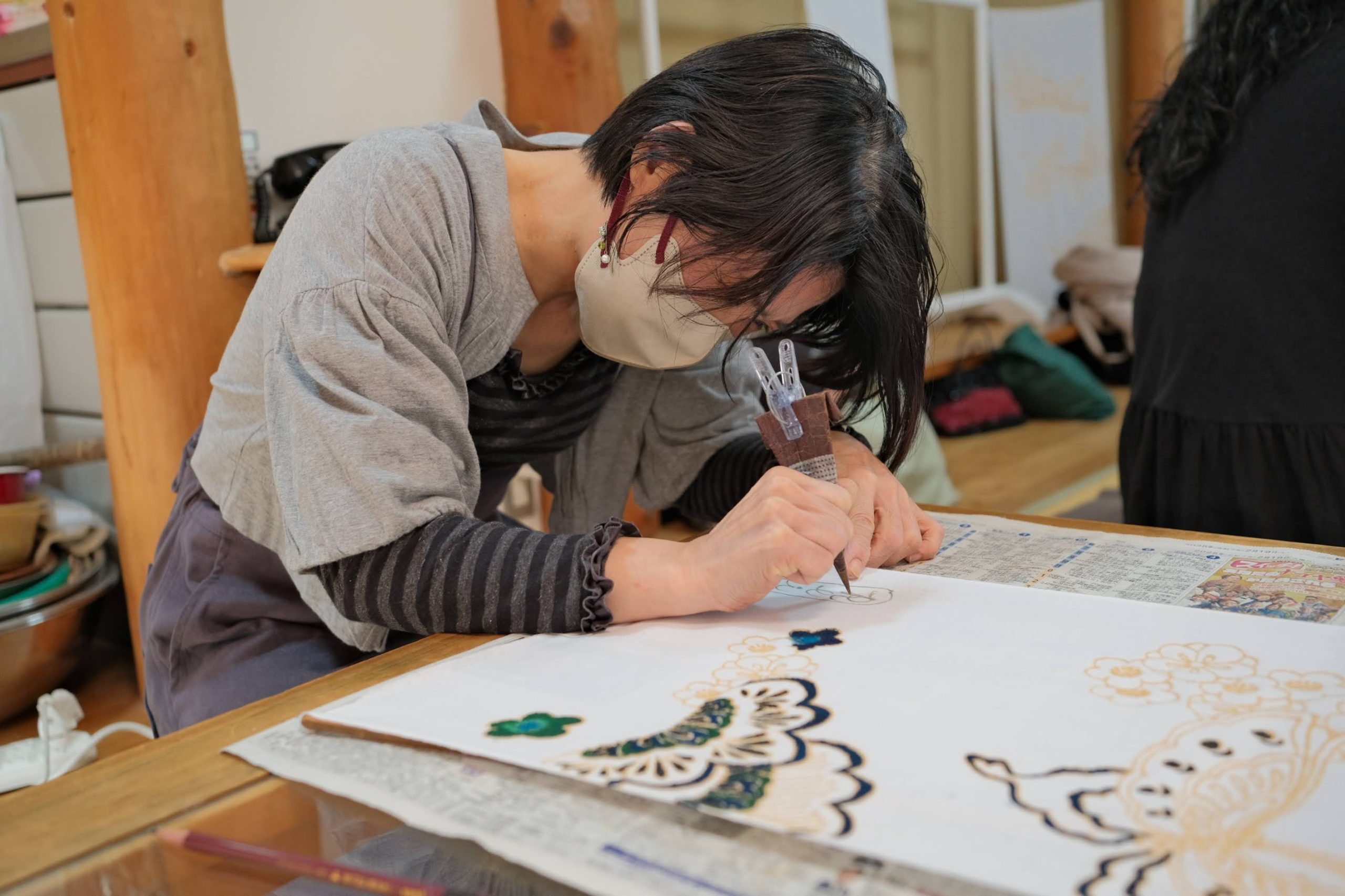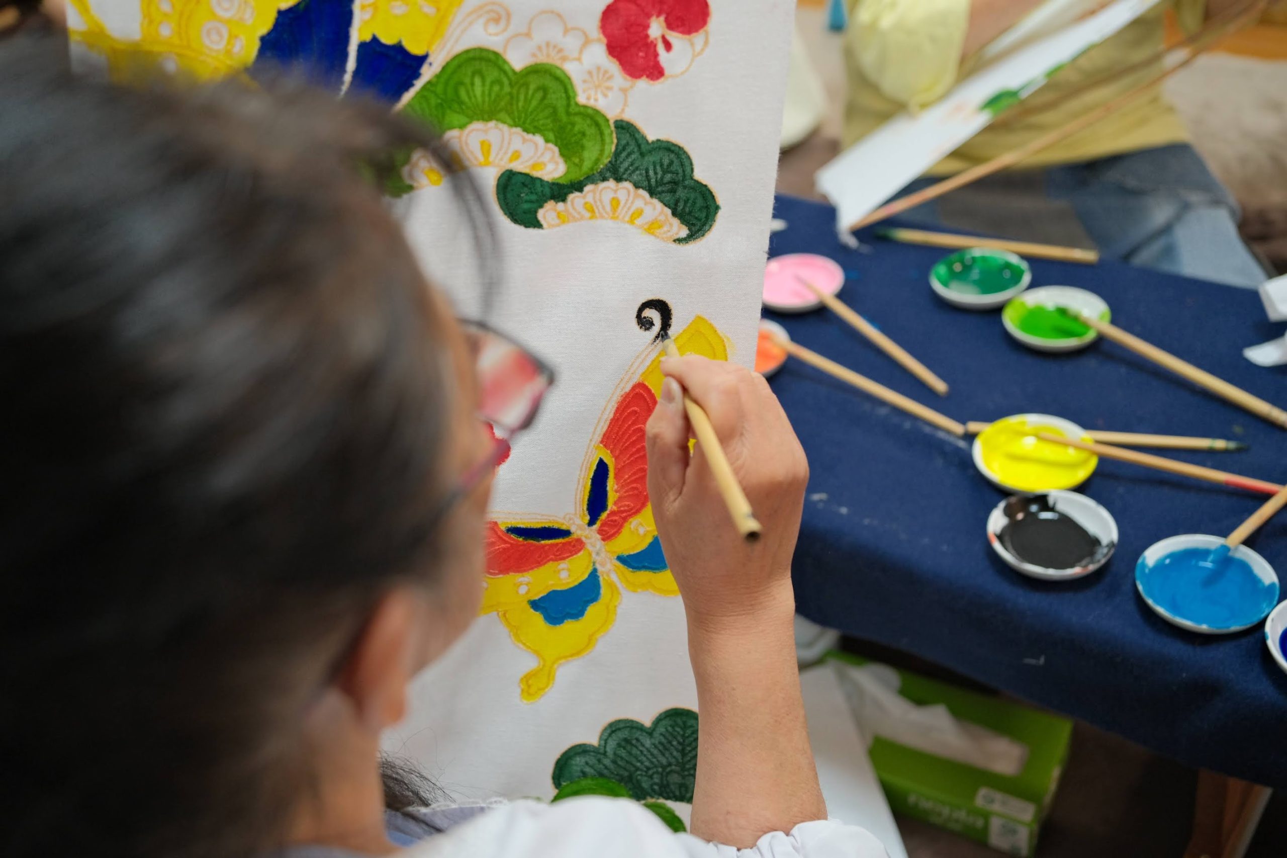 櫻井さんに指導いただきながら染めていきますので、未経験者でも安心!大人の塗り絵のように集中して楽しんでもらえます。伝統工芸の技に触れながら自分好みの配色に染め上げ、世界に一つだけの染手ぬぐいを作りましょう。