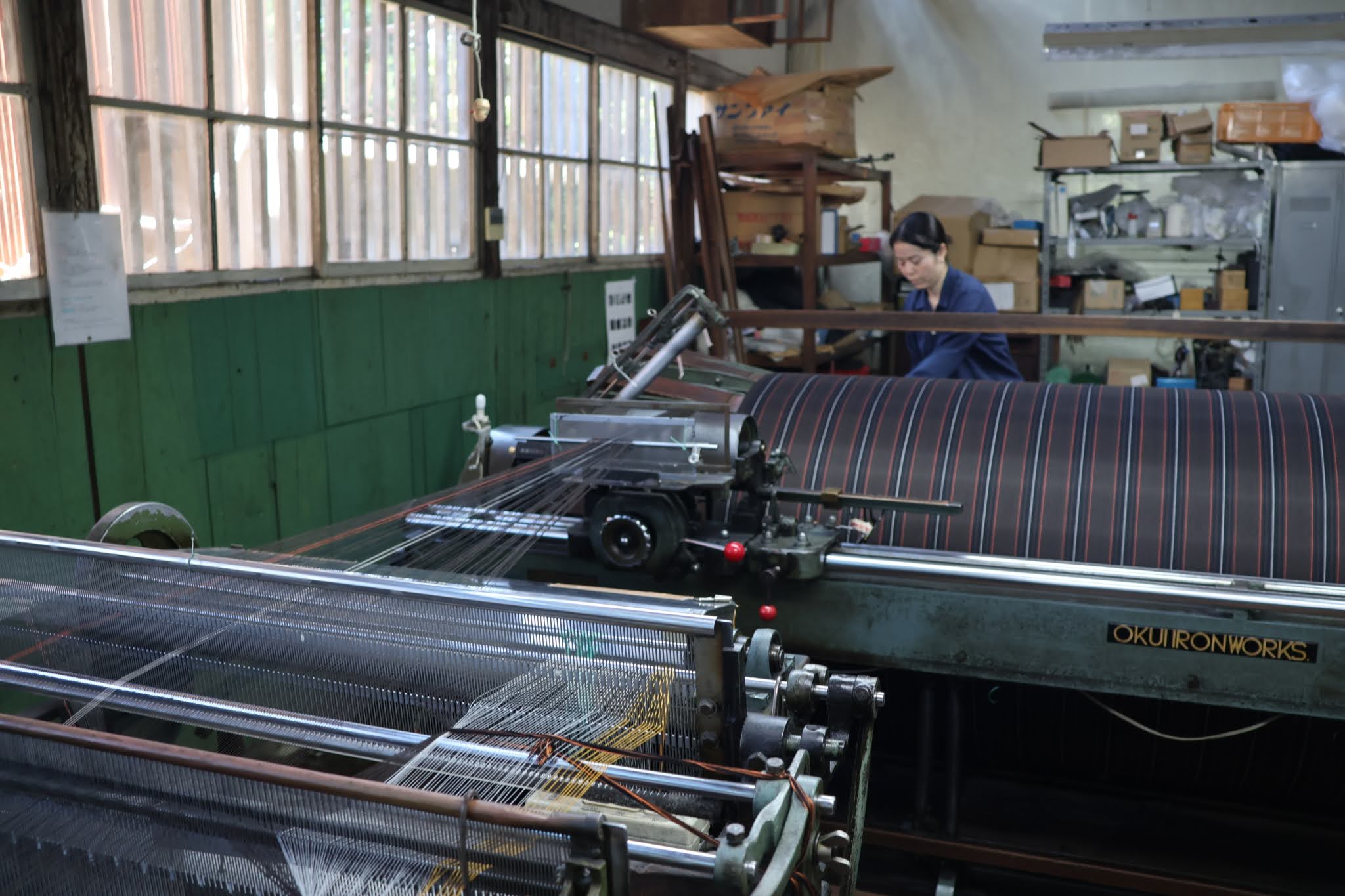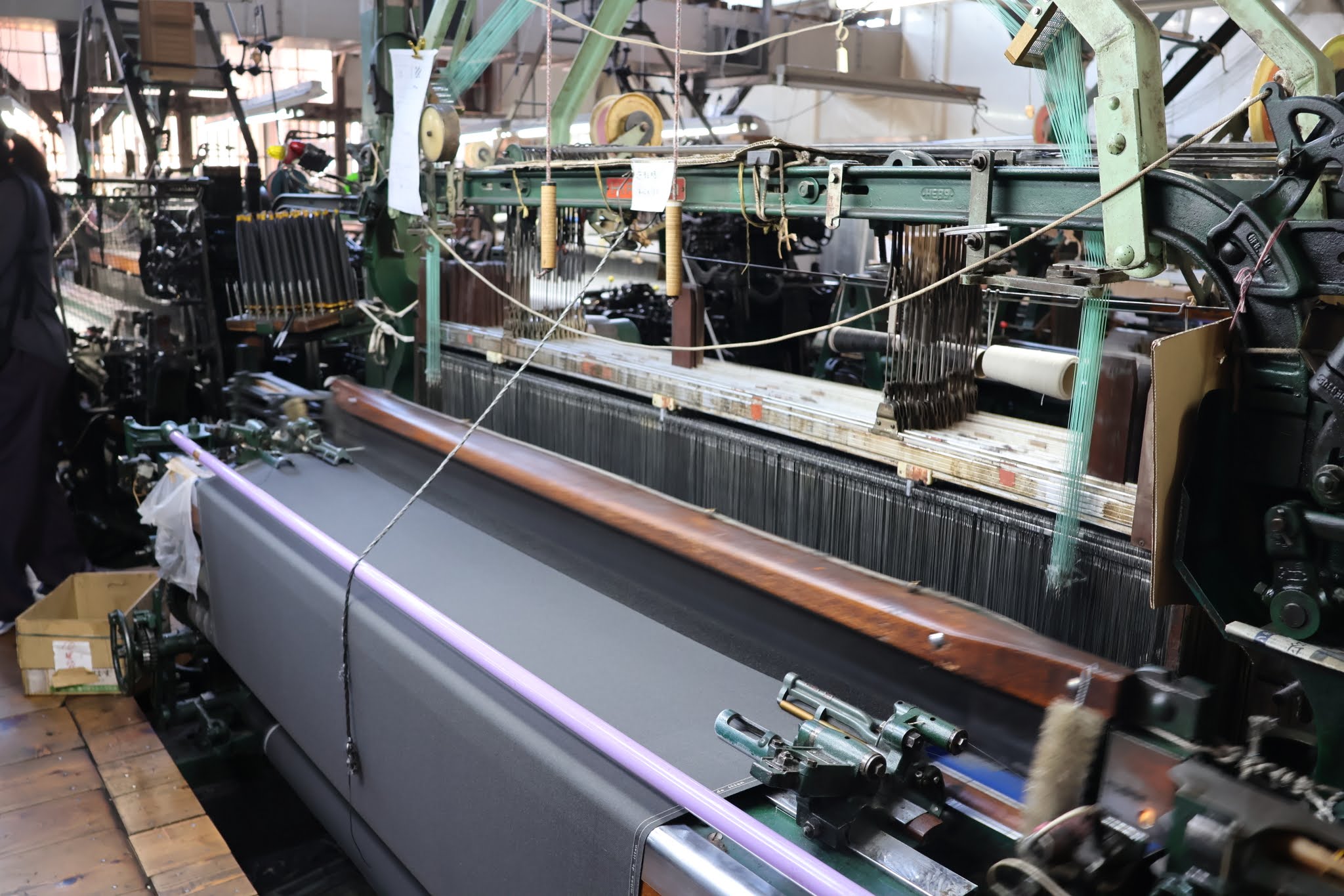 一宮市は毛織物の全国生産量の80%を占める一大産地。「尾州織物」と呼ばれ、品質の良さから世界のトップブランドからも認められています。尾州産地の中でも創業100年を超える「葛利毛織工業」は旧式の低速ションヘル織機を14台保有し、高級ウール生地を丁寧に織っています。ガシャンガシャンと轟音が鳴り響く中、1本の糸から生地が織り上がっていく様子はファッション好きにはたまりません。