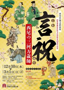 今回は、開催中の特別展「〈国重要無形民俗文化財指定30周年記念〉言祝(ことほぐ)-西尾の三河万歳師-」にちなんだものをはじめ、新春にぴったりのおめでたい古典籍を楽しみましょう。
